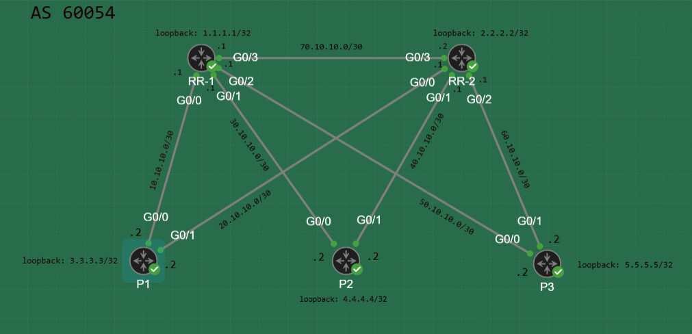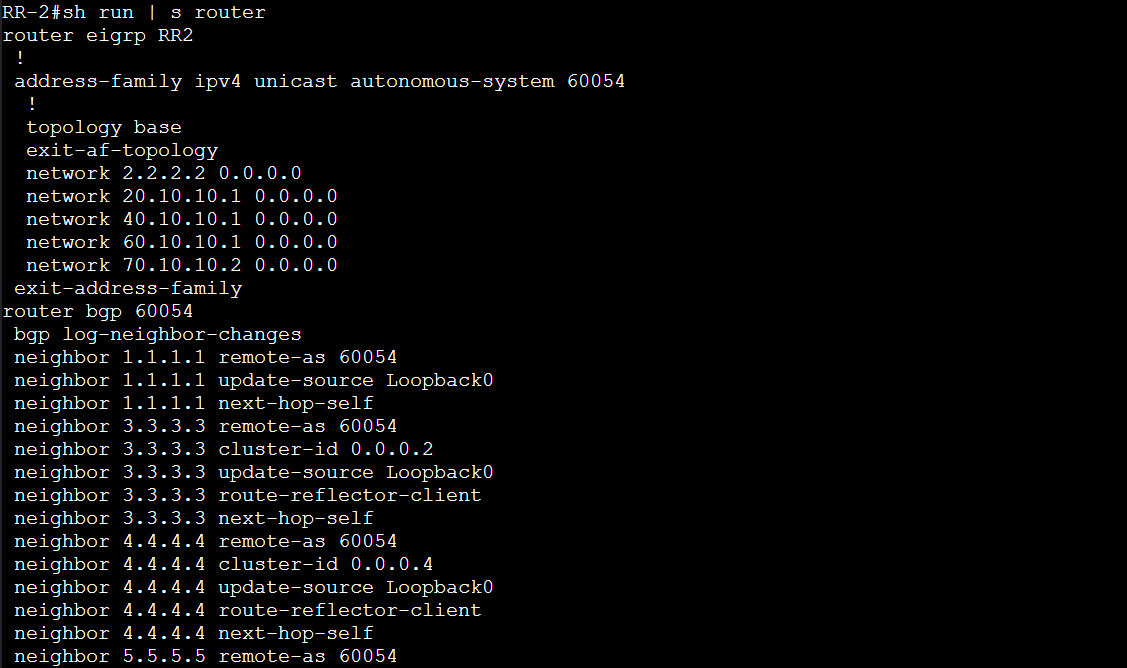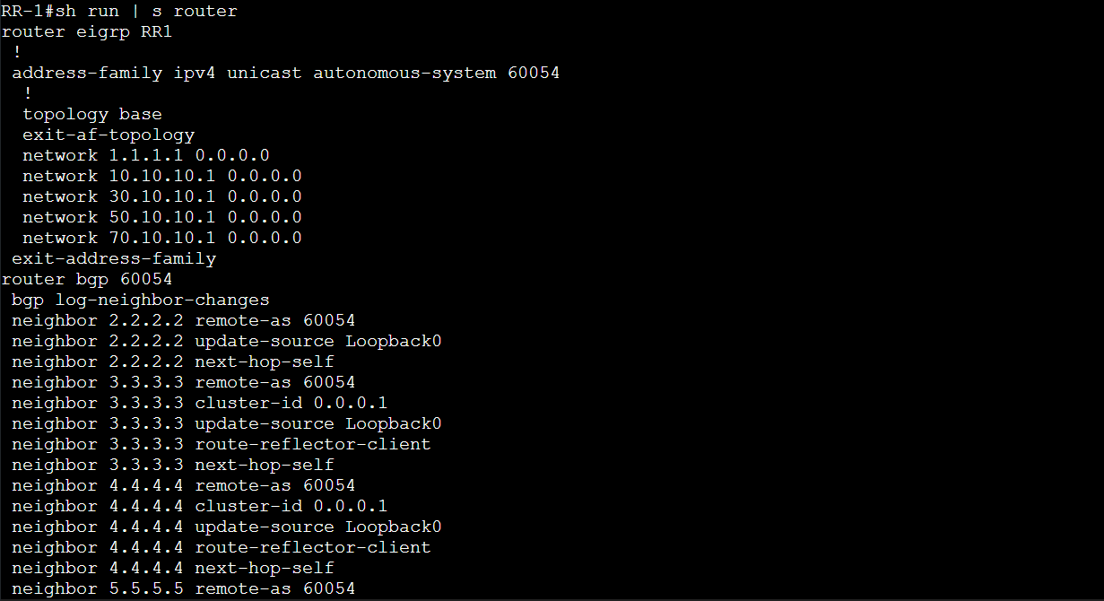 - Each client must NOT peer with any other client of a different RR. Peering with the different RR is sufficient.