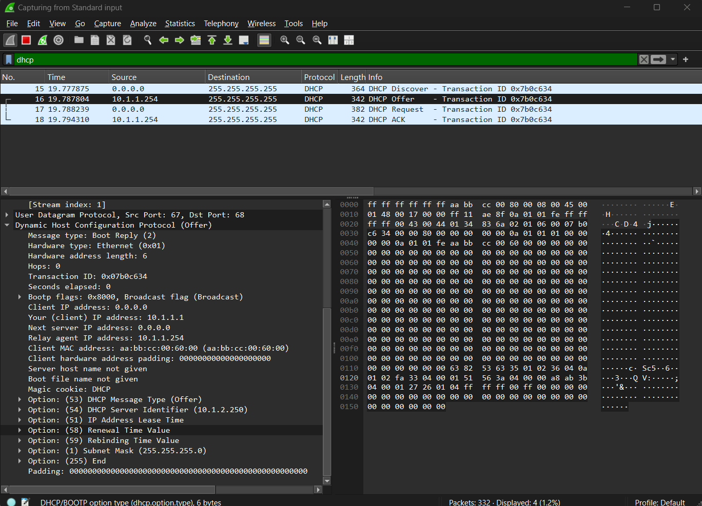 default-router 1.1.1.252 <== This is the Relay Gateway