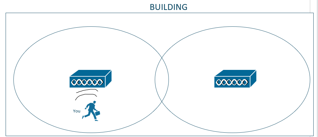 Imagine that youâre in a building that has wireless coverage that is provided by 2 APs. AP-1 covers the left side of the building while AP-2 covers the right side of the building.