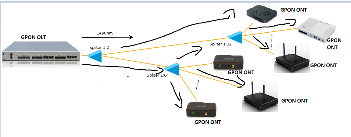 I work at an ISP space and I encountered a technology called GPON. I understand that the principle is the following: