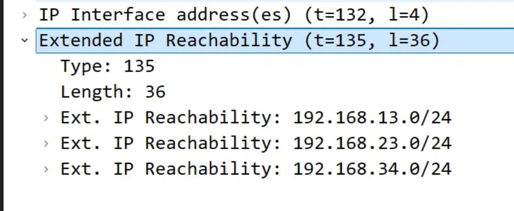 I did find the IPv6 in Wireshark but any IPv4 prefixes are advertised as Extended IP Reachability. Do we know whether the second TLV is being used or not?