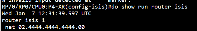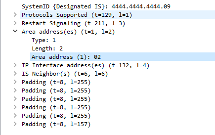 If I configure this NSAP address on one of my neighboring XR routers - net 0002.4444.4444.4444.00. It will advertise its Area Address like this: